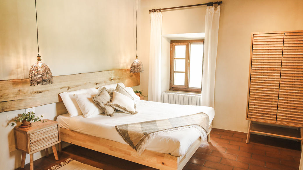 The first floor features four beautifully designed bedrooms, and the second floor offers two more. Each room combines classic Tuscan elements with modern comforts. All rooms have air conditioning. The spaces are completed with well-preserved terracotta floors and wooden beams that preserve the villa’s 19th-century charm.